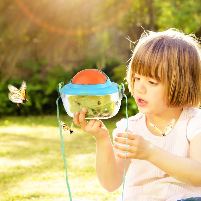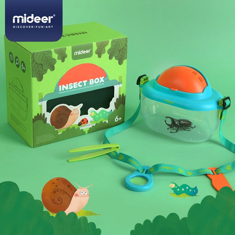 Includes flat tweezers, cardboard ruler, loupe, two clips, rope, two size adjustments for rope, insect tattoo and insect box.