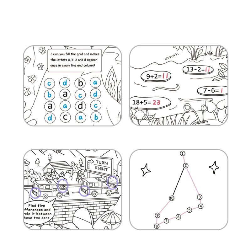 Mini games are included - maze, sudoku, number game, find the difference and draw the line.