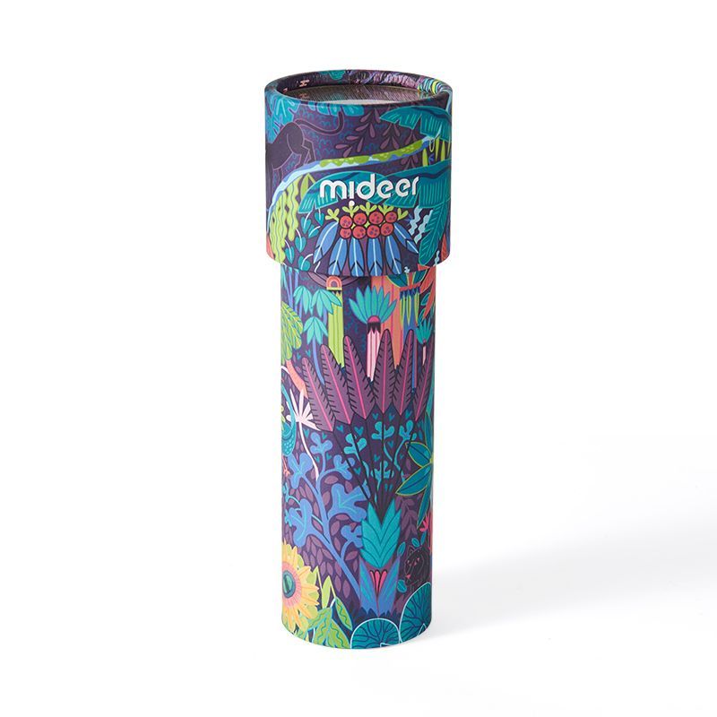 The kaleidoscope body is in a modern design with a rainforest motive.
