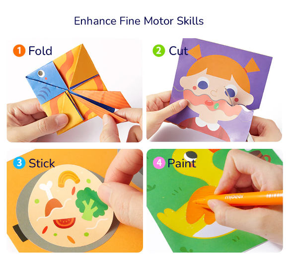 ✂️ Practices cutting, folding, and gluing – ideal preparation for school