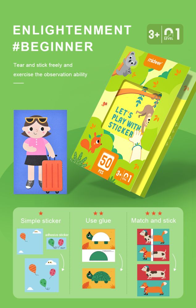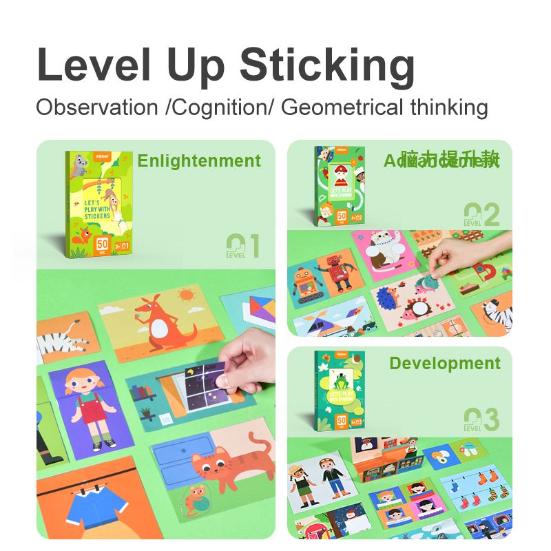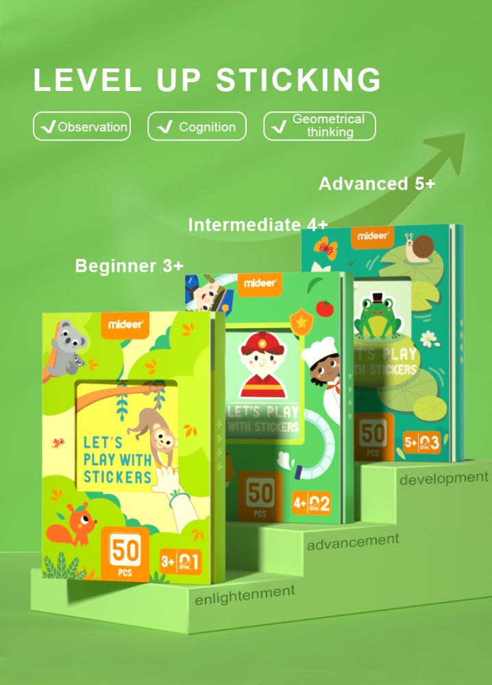 Mideer LEVEL UP Creative Puzzle Set contains 3 levels of puzzles from simple to advanced.