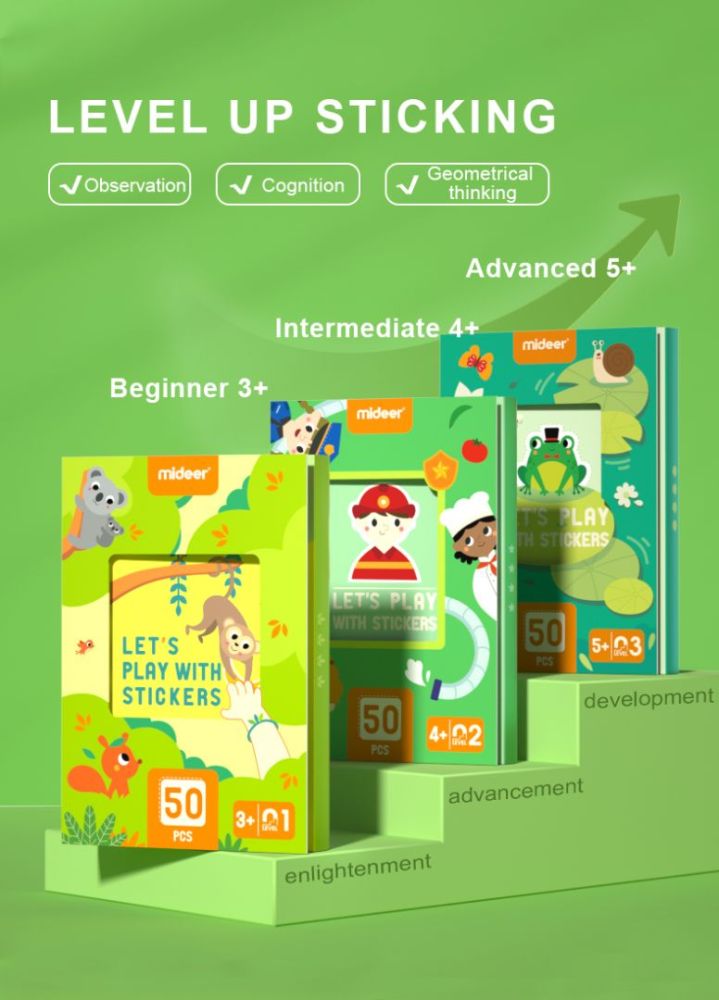 Mideer LEVEL UP Creative puzzle set contains 3 levels of putting together from simple to advanced.