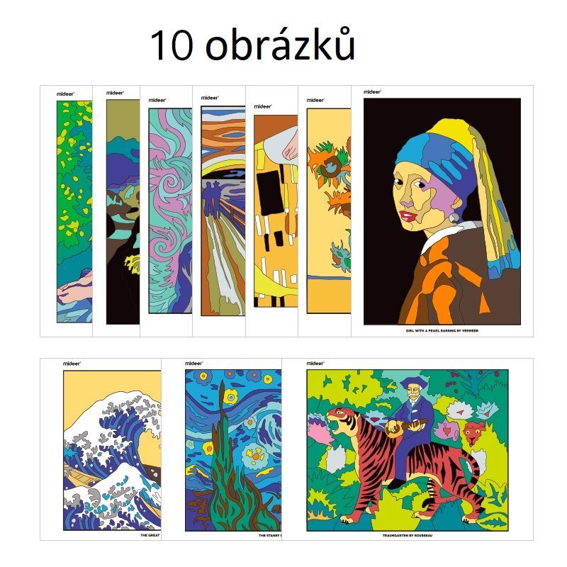 Tíz darab, szám szerint festett képből álló készlet, melyeket remekművek ihlettek. A művészeti alkotások színezése nem csak gyermekeknek szánt szórakozási lehetőség, hanem akár a felnőtteknek is kellemes időtöltés.