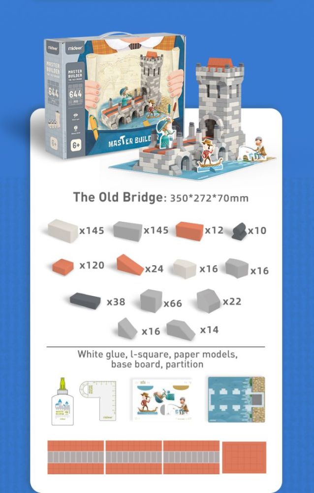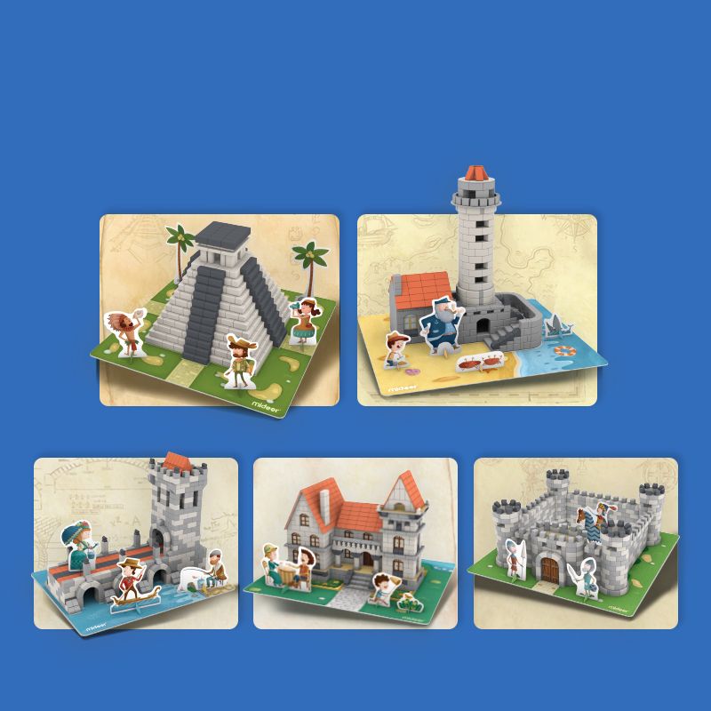 Zestaw konstrukcyjny Mistrz budowniczy – ten kreatywny zestaw przeniesie dzieci do świata architektury i historii. Za pomocą mini-cegiełek z naturalnego materiału mogą zbudować słynne budowle, takie jak średniowieczny zamek, piramida Majów lub inne kultowe zabytki.