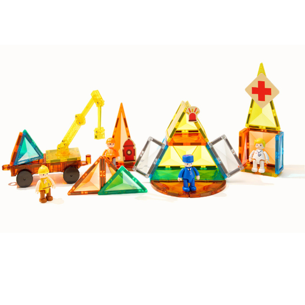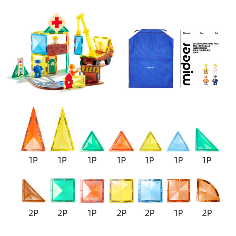 A gyerekek szabadjára engedhetik fantáziájukat, és 2D-s és 3D-s építményeket hozhatnak létre. Ez az eredeti mágneses építőkészlet gyerekeknek városi hősök figuráit is tartalmazza, amelyekkel a kis építők saját kalandos városi jeleneteket hozhatnak létre.