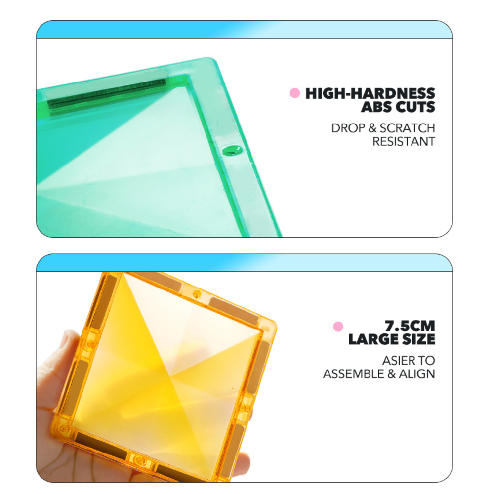 • Erős mágnesek – biztosítják a darabok szilárd összekapcsolódását, az építmények stabilak és gyakori kezelés mellett is tartósak.