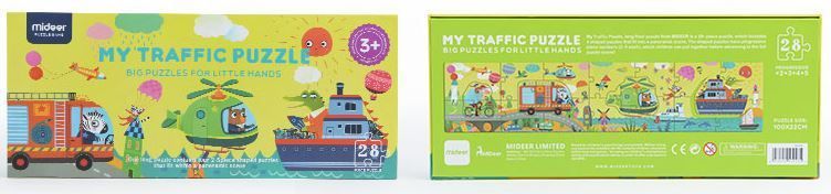 Po zložení všetkých 28 dielikov má puzzle rozmery 22 x 100 cm.