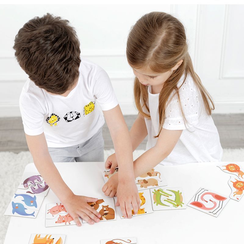 Na zadnej strane sú obrázky dvojíc, takže si môžete s dielikmi aj zahrať pexeso