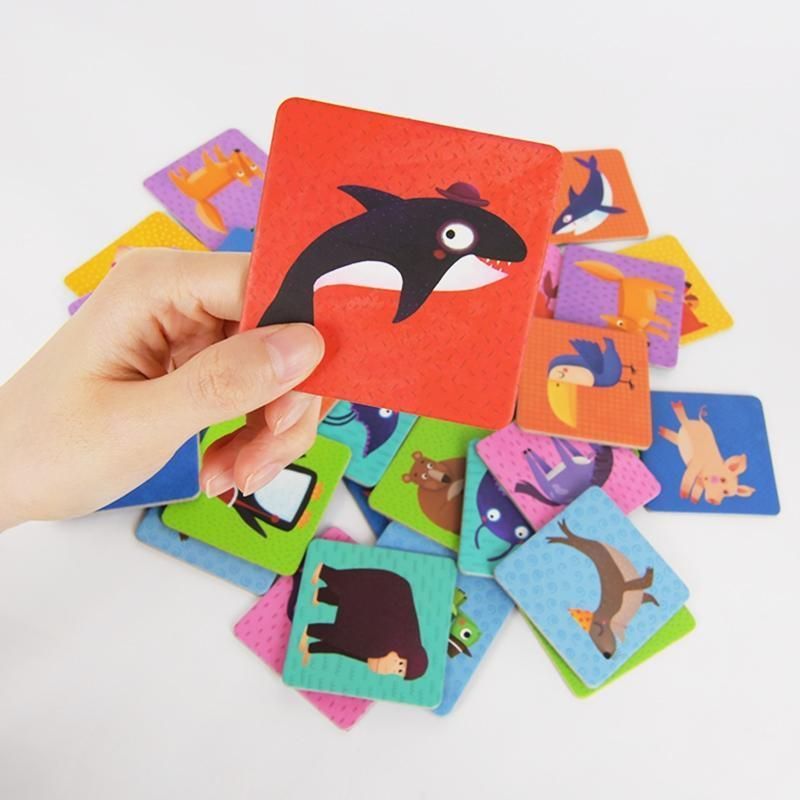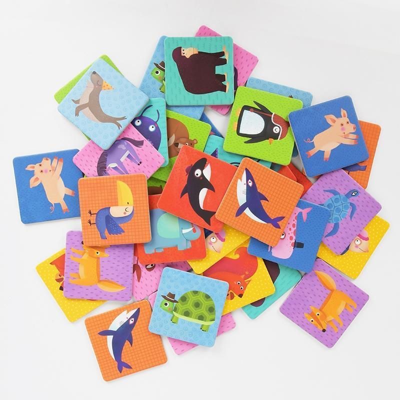 Pexeso obsahuje celkem 36 kartiček s celkem 18 ti různými zvířecími postavami.
