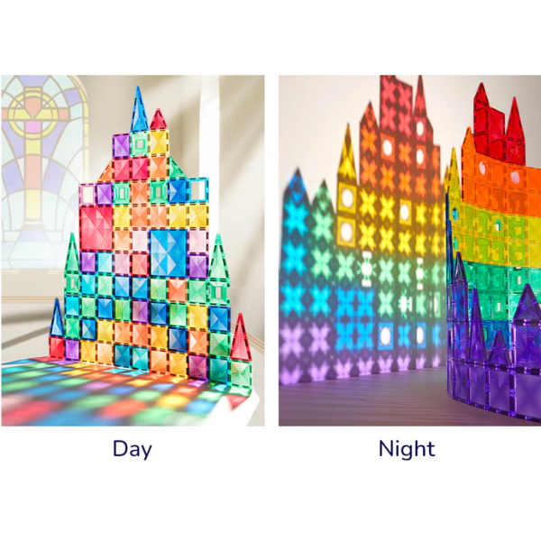Díky barevným průhledným dílkům s pevně zabudovanými magnety si děti mohou postavit domy, hrady, mosty, věže a mnoho dalších tvarů podle své fantazie.