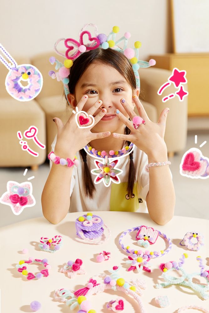 Készítsd el saját, egyedi kiegészítőidet kreatív készletünkkel! A gyerekek könnyedén készíthetnek karkötőket, gyűrűket vagy hajpántokat.