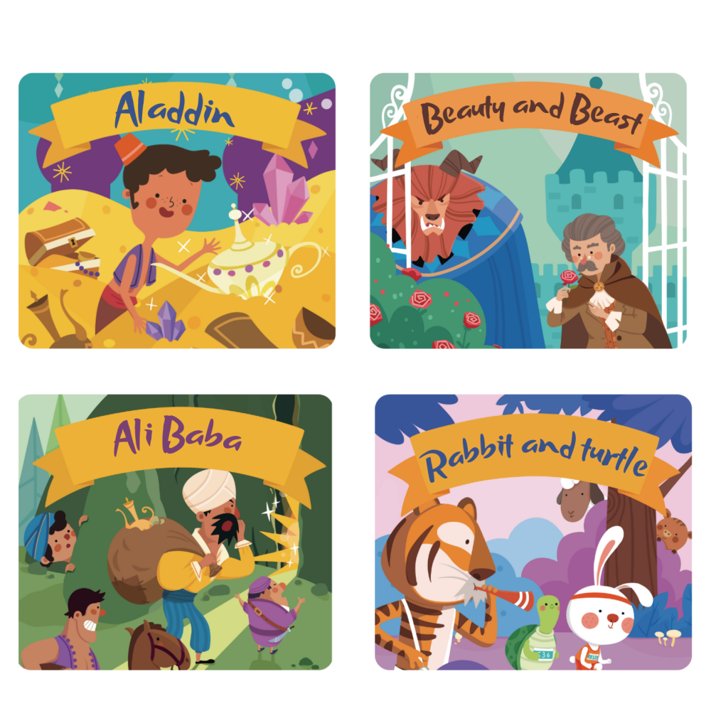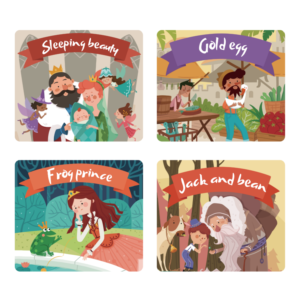 Balení obsahuje 16 pohádek o 8 obrázcích. V tomto balíčku najdete pohádky: O Malence, O Pinocchiovi, O Šťastném princi, O Popelce,O pasáčkovi, který rád žertoval, O perníčku, O velké řepě, Cesta do vesmíru, Aladdinova kouzelná lampa, Kráska a zvíře, Alibaba a čtyřicet loupežníků, bajka Zajíc a želva, Šípková Růženka, Husa a zlaté vejce, Žabí princ a Jack a fazole