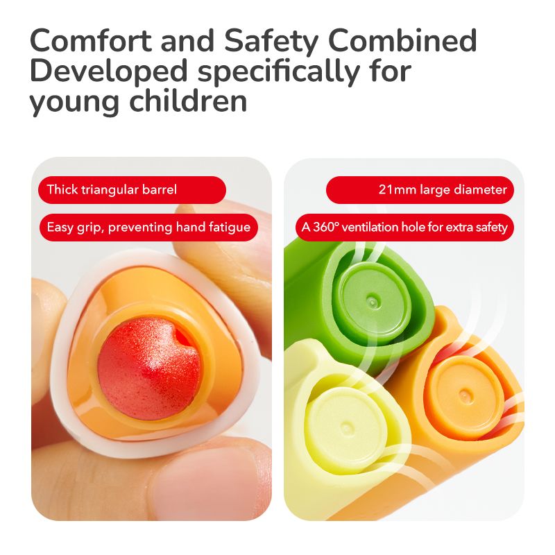 Fixy jsou navrženy tak, aby se dětem pohodlně držely, dobře kreslily a zároveň byly snadno omyvatelné z pokožky i většiny textilií.