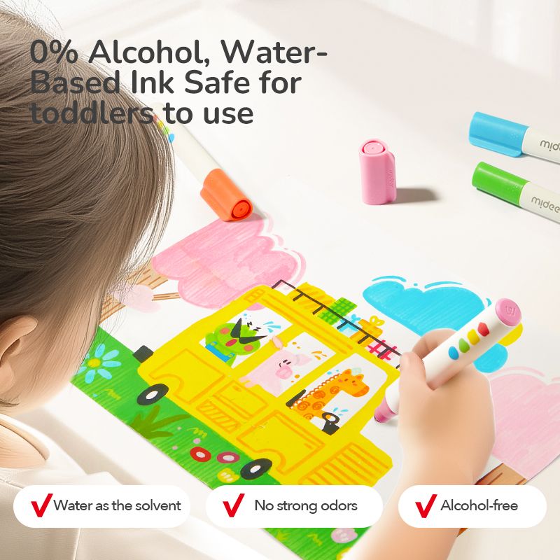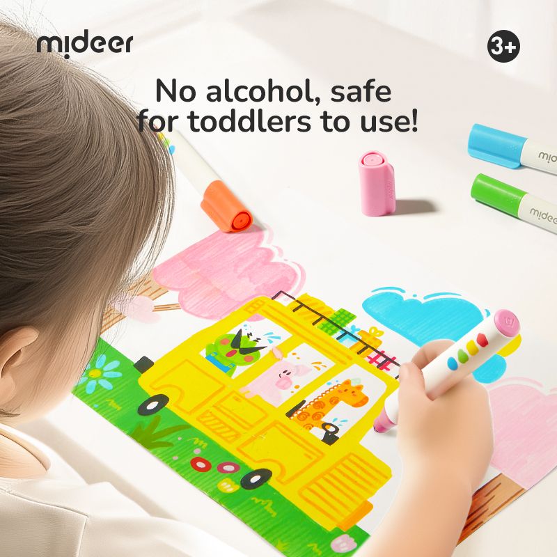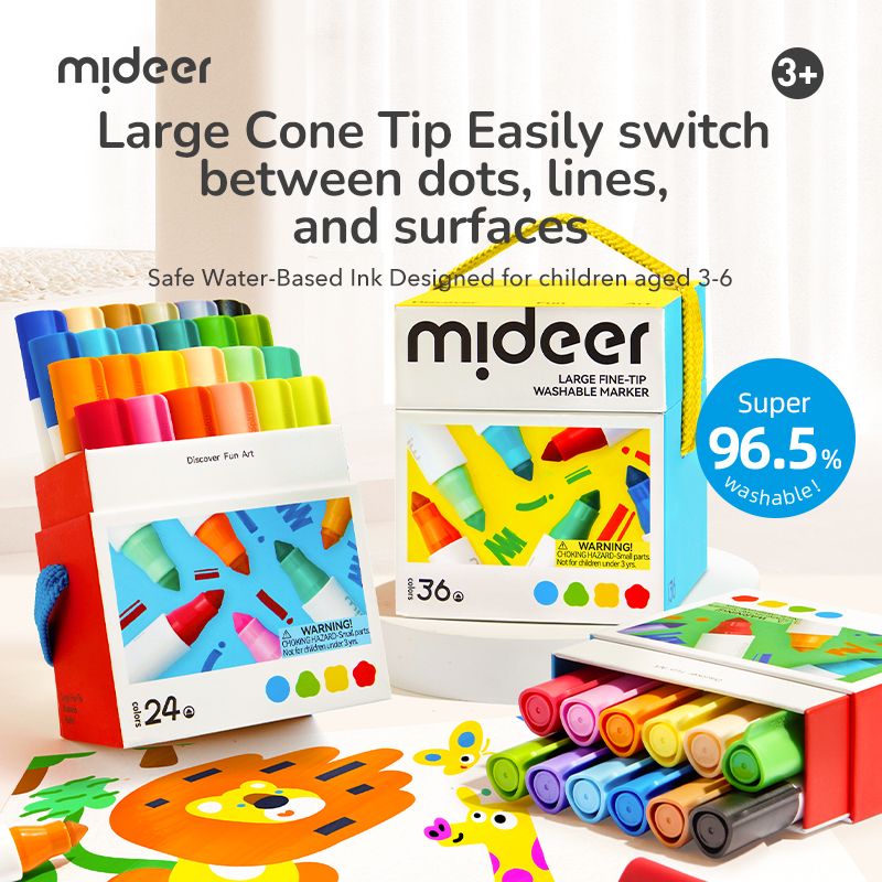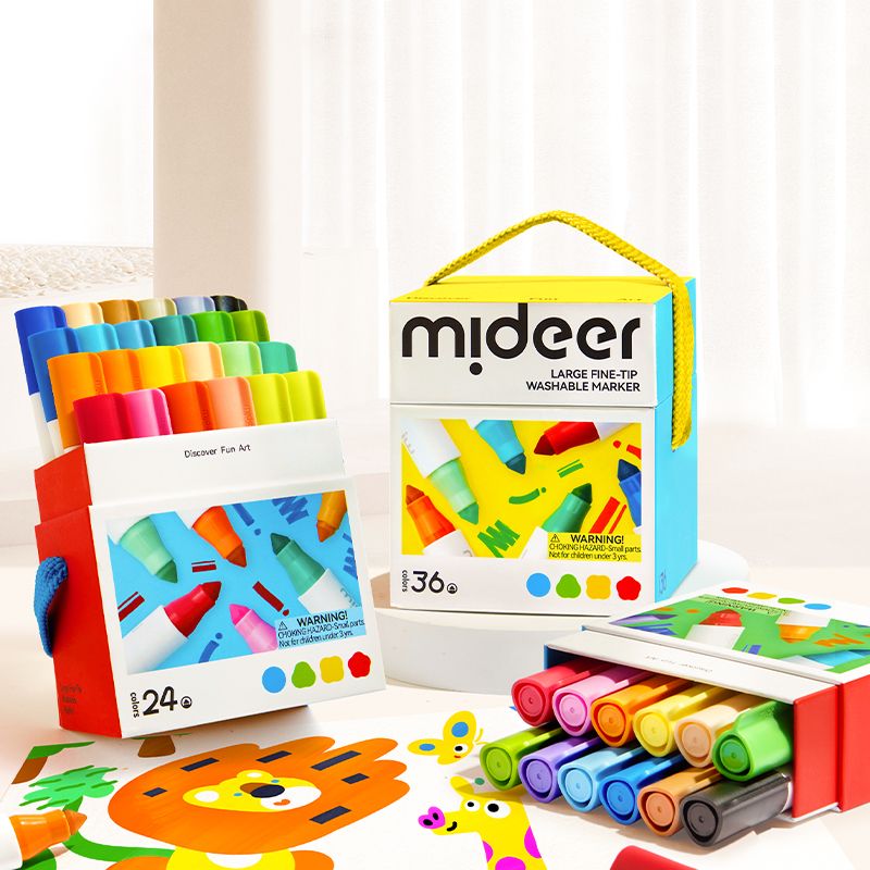 Objevte kvalitní omyvatelné fixy Mideer s jemným hrotem, které jsou ideální pro první dětské kreslení, vybarvování i detailní tvorbu.