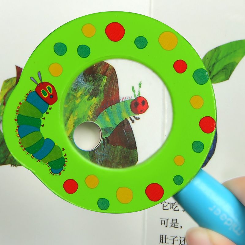 The magnifier is colourfully designed according to the illustrations of children's books by the famous author Eric Carle.