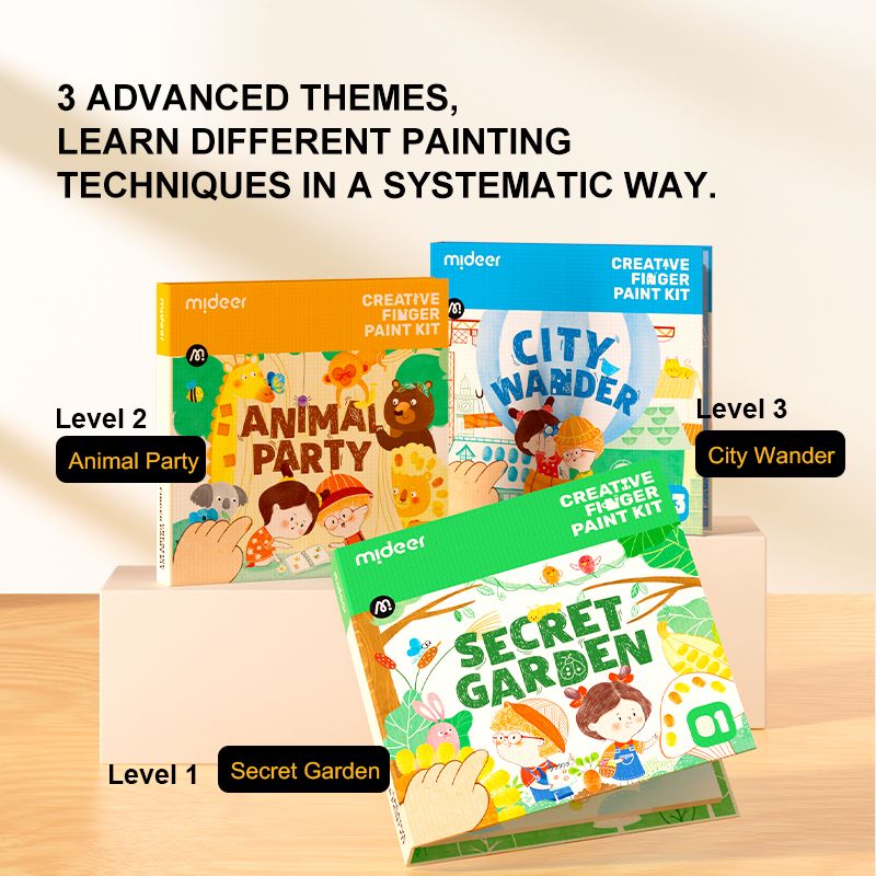 Coffret créatif pour enfants comprenant des peintures spécialement conçues pour la peinture au doigt.