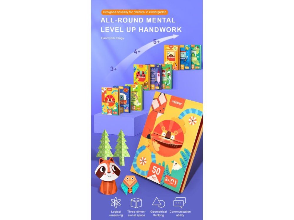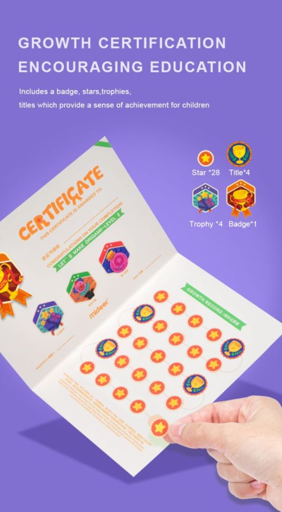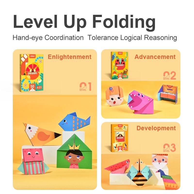 Le coffret LEVEL UP Pliages créatifs de Mideer propose 3 niveaux de pliage, du plus simple au plus avancé.