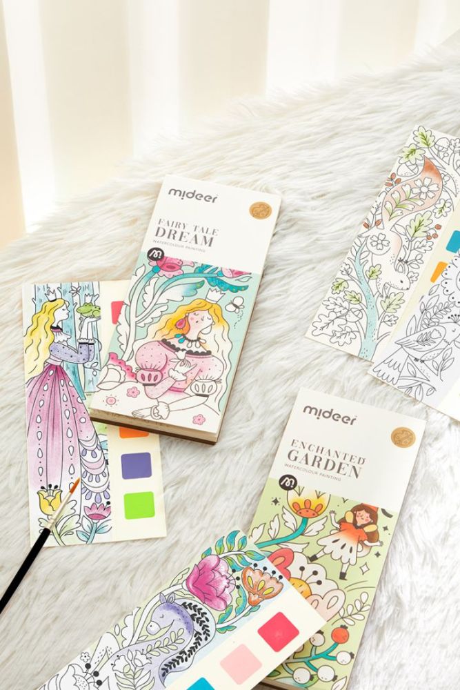 U každého obrázku jsou i barvy, stačí pouze kelímek s vodou.