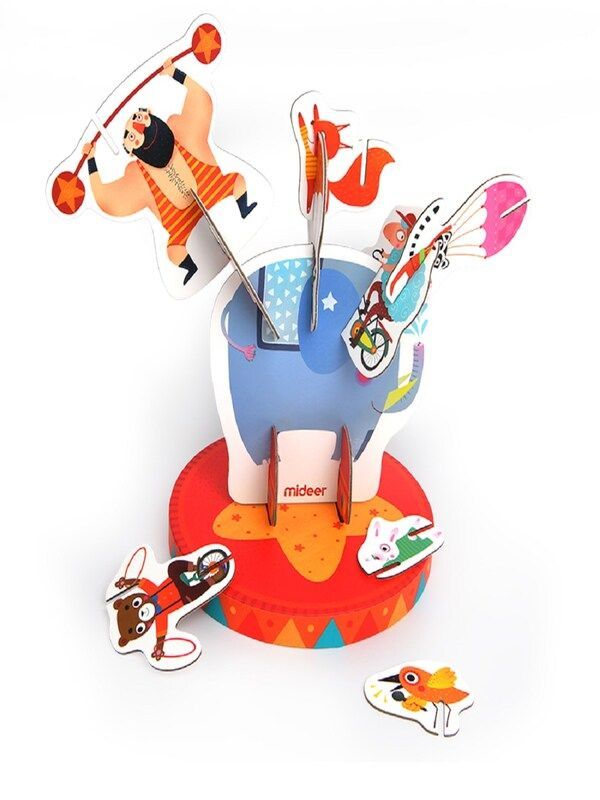 Zábavné 3D stohovací puzzle z cirkusového prostředí z tvrdého kartonu.
