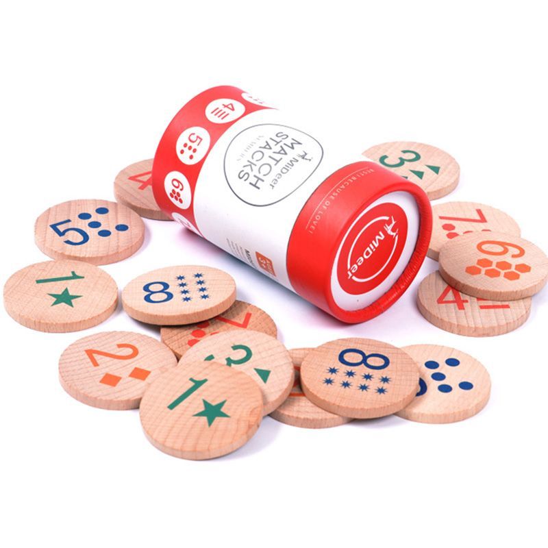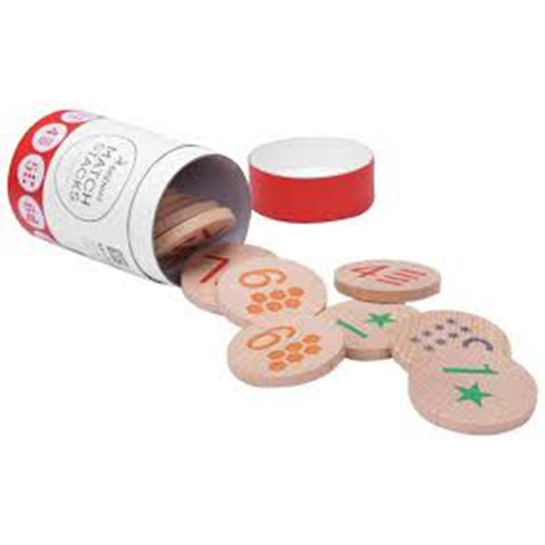 So grab a friend and get to it! Each tube contains 16 round wooden tokens with pictures of each number.