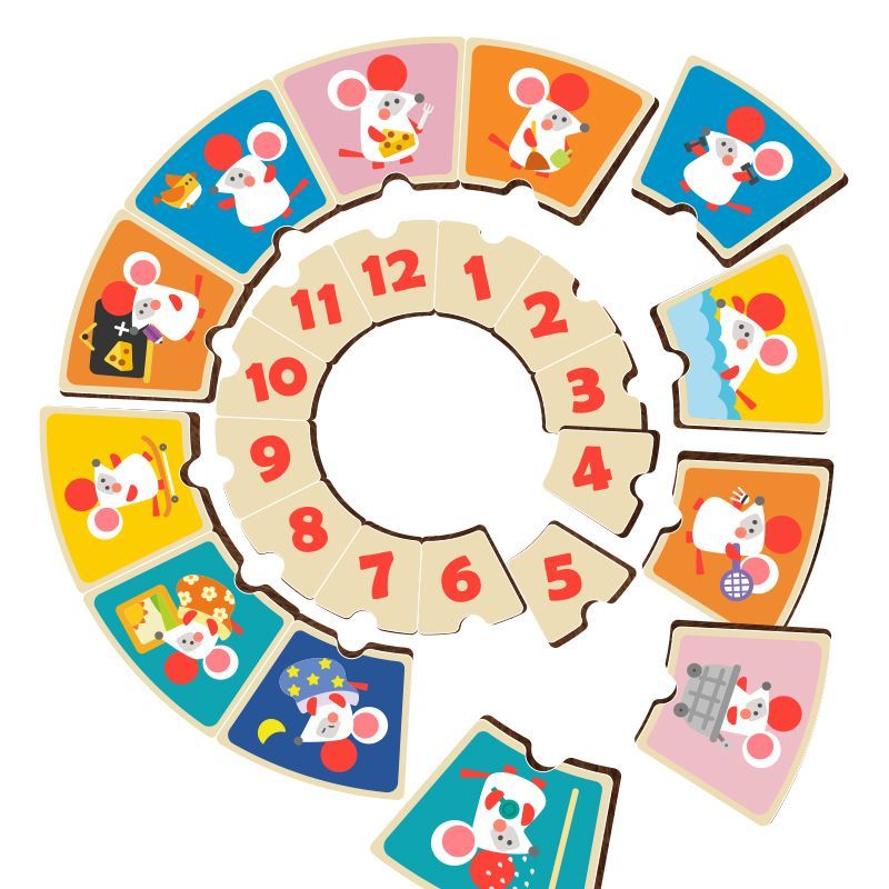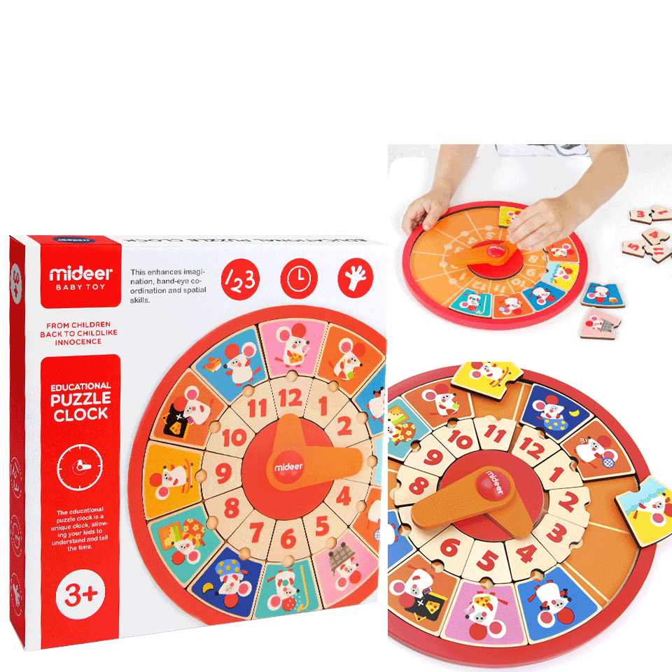 Vzdělávací a naučná hračka, kde se dítě zábavnou formou učí poznávat číslice, hodiny a čas.