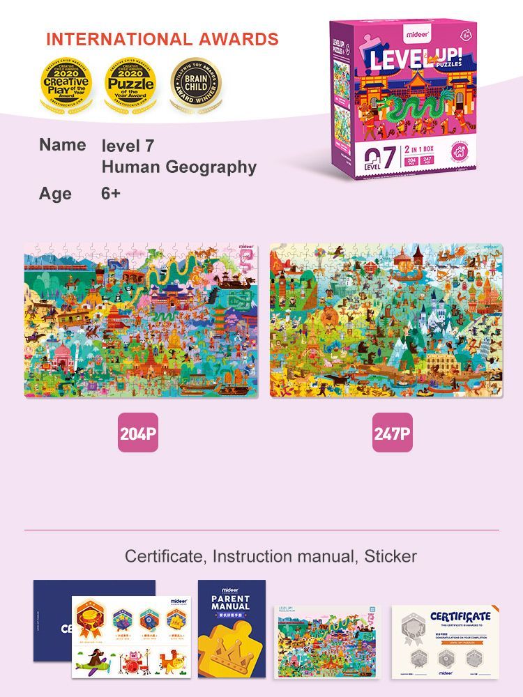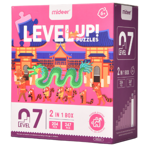 Tato sada puzzle obsahuje celkem 8 stupňů podle vývoje inteligence dětí ve věku 1-8 let, přičemž každý stupeň odpovídá dětem různého věku.